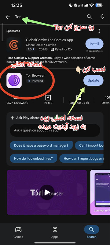 به هیچ عنوان تور از جایی به جز گوگلپلی و سایت
